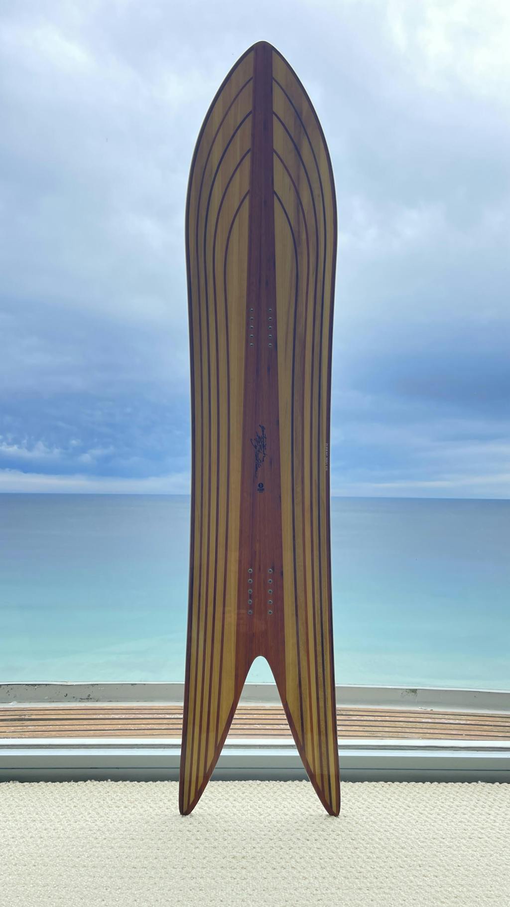 BIG FISH OUTLINE COREは、"BIG FISH"とは違う構造でバンブーストリンガーを採用している。より粘りのあるトーションで、"BIG FISH"と比較した場合と若干柔らかめの味付けとなる。この手の板にありがちなパウダー専用ボードとは一線を画し、グルーマーのカーヴィングにも最高のフィーリングを提供してくれる。この点がシリーズの最大の特徴であり、GENTEMSTICKが革新的だと言われる所以である。