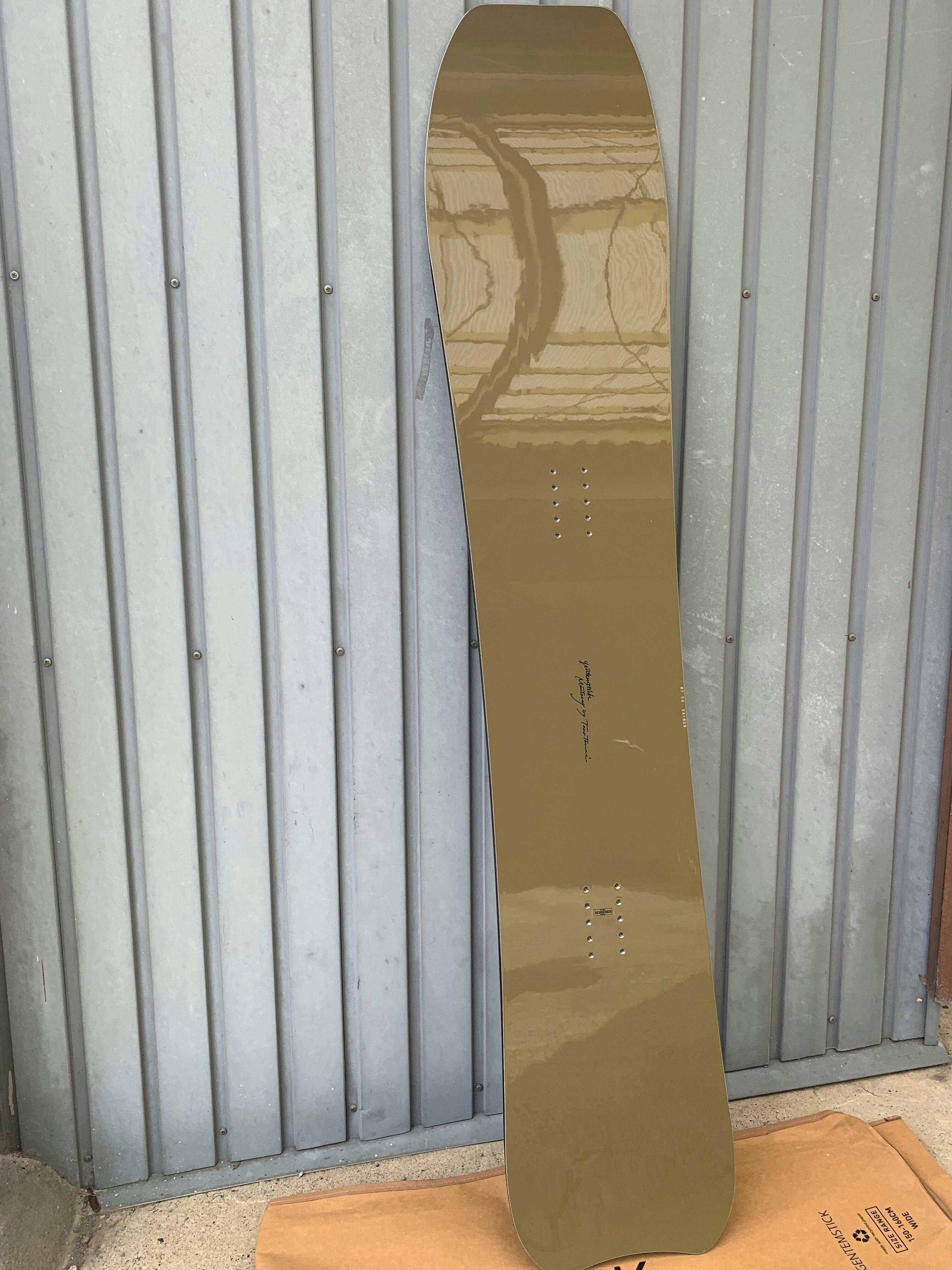 1度目にしたなら、深く印象に残ってしまう個性的なアウトライン。ビッグスクエアーノーズにハーフムーンテール。312mmの最大幅、258mmのウエストと、1540mmのレングス。ボトム形状は勿論、斜面との抵抗が極端に少ないロッカーとキャンバーシステム。面で捉えている時はキャンバーを足裏で感じながら、いざ3次元地形に入り込むと水を得た魚の様にルースな動きを見せる。ノーズをパウダーに沈ませ、全ての面を使ってパウダーの中からオーリーをかます。サイドにスライドしながらテールを噛ませ、ノーズをフォールラインに送り込む。リップで足首を伸ばしながらグライド。サイドカーブの強さと相まって、絶対スピードより体感スピードにチューニングされ、どの方向にも自由自在な挙動を見せる。