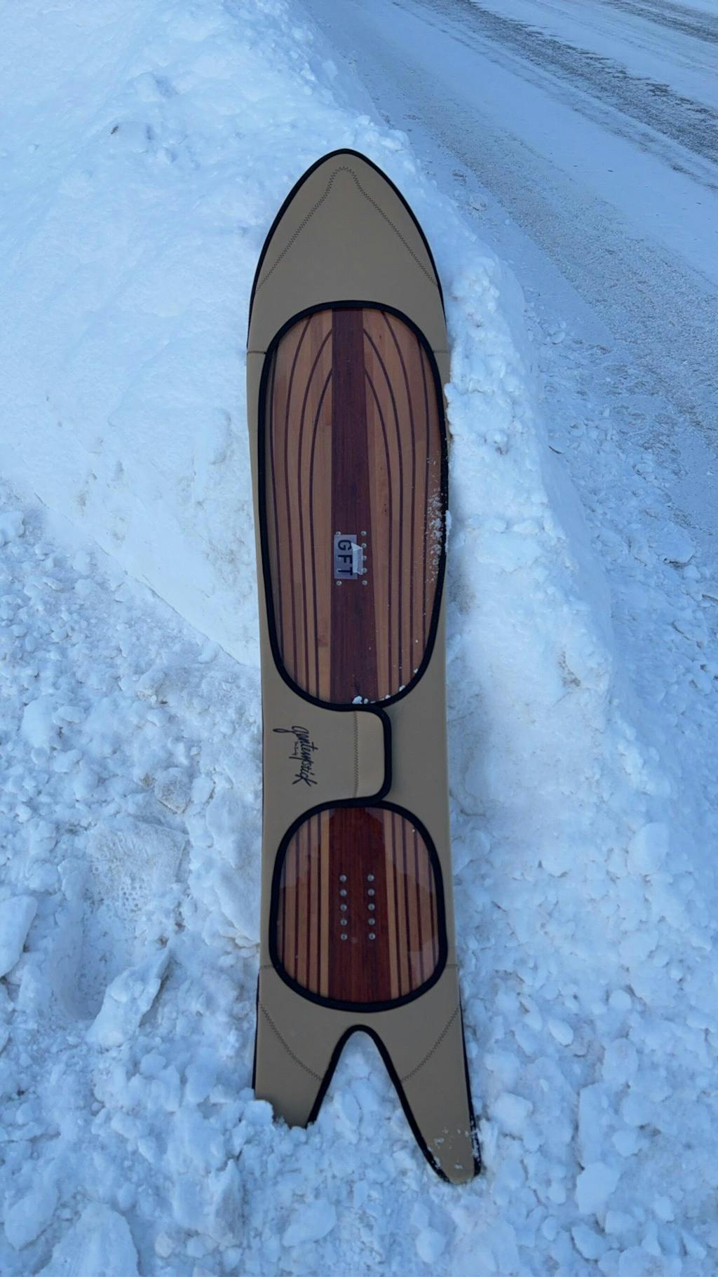 GENTEMSTICK アクセルキャンバー はその引っかかりを無くし深雪や新雪でもボード先端が雪の中に潜り込まず、自然な浮力を得るようなポジションになるという画期的なものだ。ライダーが自然なポジションで雪面に立った時にボードの形状が最高の滑走性能となるよう開発された。ノーズ最大幅から前足の辺りまで反りが全くなくフラットで前足辺りからテール最大幅3cmセンター寄りまで、アーチベンドの反りが入っている。(アーチ状のピークは後ろ足辺りとなる。)ライダーがボードの上に乗り雪面に立ち上がると、アーチベンドが潰され前足辺りからノーズ部分が雪面に触れているだけ、または少々持ち上がる状態になる。この状態はボードの滑走性能を最大にするためのポジションで、スキーの滑降競技などでの最高速を出すためのポジショニングも同様である。